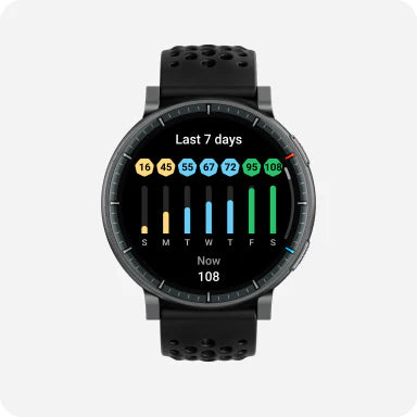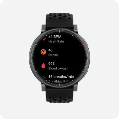 Track⁹ your real-time heart rate, sleep quality, blood oxygen and stress, 24/7. -